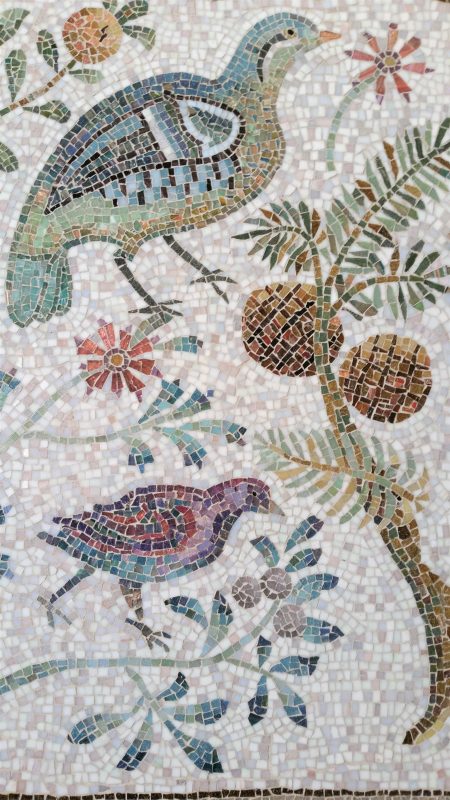 “Roman style mosaics are my mainstay. I try to capture the essence and vitality of ancient Roman mosaics in that my lines are rarely straight, my borders are not entirely even and the imperfections of my andamento are most deliberate.”